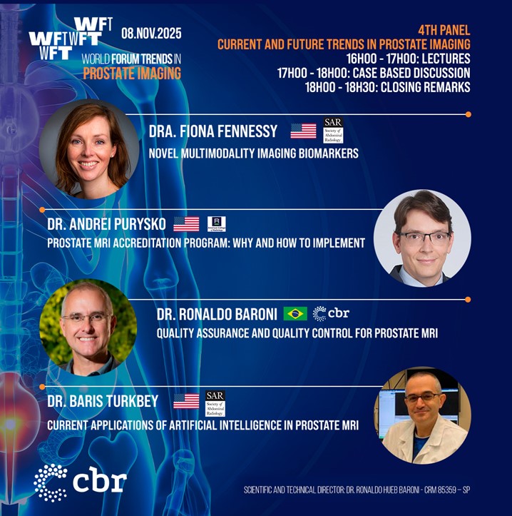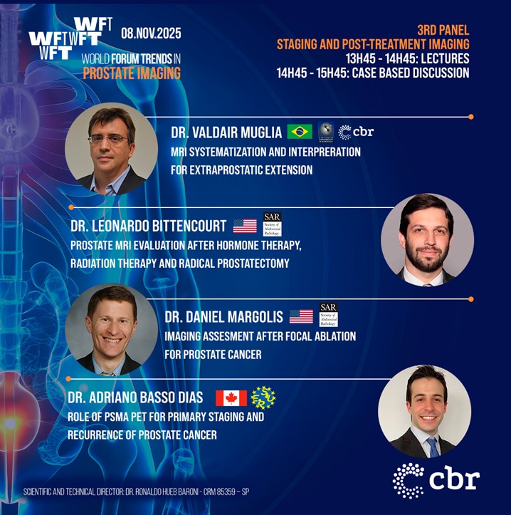 The WFT is an online event organized by CBR, bringing together national and international experts to discuss the main trends in radiology worldwide. This special edition, aligned with Prostate Cancer Awareness Month and International Radiology Day, will focus on Prostate Imaging. The forum will feature leading authorities in the field, with online lectures and hands-on workshops using a state-of-the-art web-based PACS (allowing participants from all over to world to participate simultaneously). The event is supported by several international radiology societies.